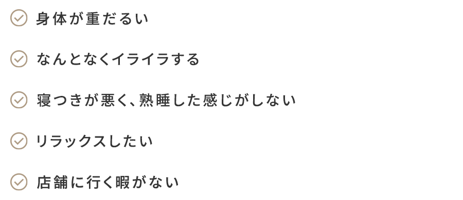 お一人おひとりの身体の状態や生活環境に応じて、施術内容を柔軟に組立て、継続的な心身の安定をサポートいたします。